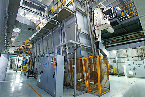 該設備由入口吸風風刀、烘箱本體、熱風導向系統、加熱區、高強度鏈條傳動系統、恒張力的鏈條張緊系統、冷卻區、出口吸風風刀等組成。配有鏈條自動潤滑系統及油霧吸附系統。排氣風機是將烘烤罐體時揮發出的溶劑揮發物排出,并且能使烘箱內的出入口保持一定的微負壓。